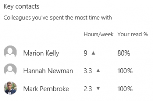 Scrolling down the page, there is more detail about the people you worked most with, how long you spent with them and what percentage of their emails you read: