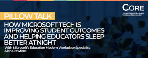 In this episode of Pillow Talk, Core's Client Solutions Director Eamon McGann speaks with Alan Crawford, a former teacher and now Microsoft Education Modern Workplace Specialist, about his move from frontline teaching to Microsoft, how technology is supporting accessibility and innovation in schools and universities, and the tech that's transforming student outcomes.